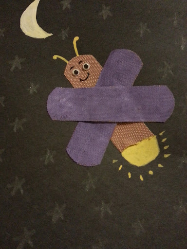 Got this cute idea from http://www.iheartcraftythings.com/2011/07/story-time-tuesday-very-lonely-firefly.html I did not have colorful bandages, so we painted them up :)